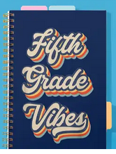 On the current page for back to school supplies (https://www.zazzle.com/back+to+school+gifts), there is a picture of the Fifth Grade Vibes notebook in navy blue.